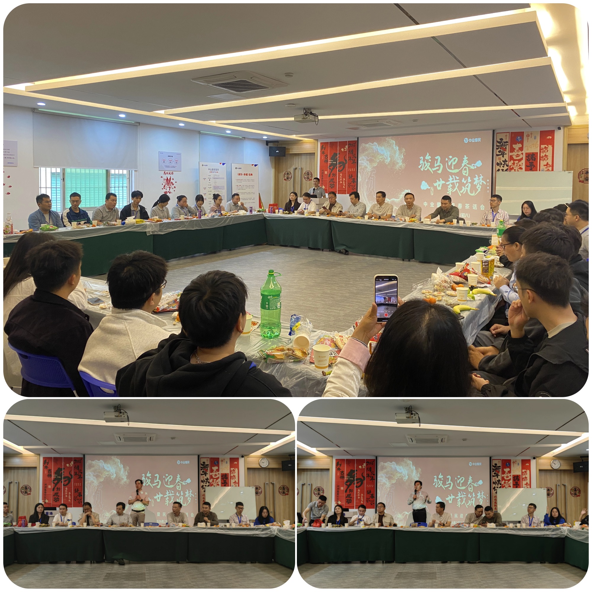 2026年2月24日,农历丙午马年正月初八开工第一天,中业爱民控股总部洋溢着新春的喜庆与温暖。2026年的首场新春茶话会温馨举行,到岗的中业人欢聚一堂,在轻松愉悦的氛围中分享春节见闻,畅谈新年愿景,共同开启2026奋斗新篇章。